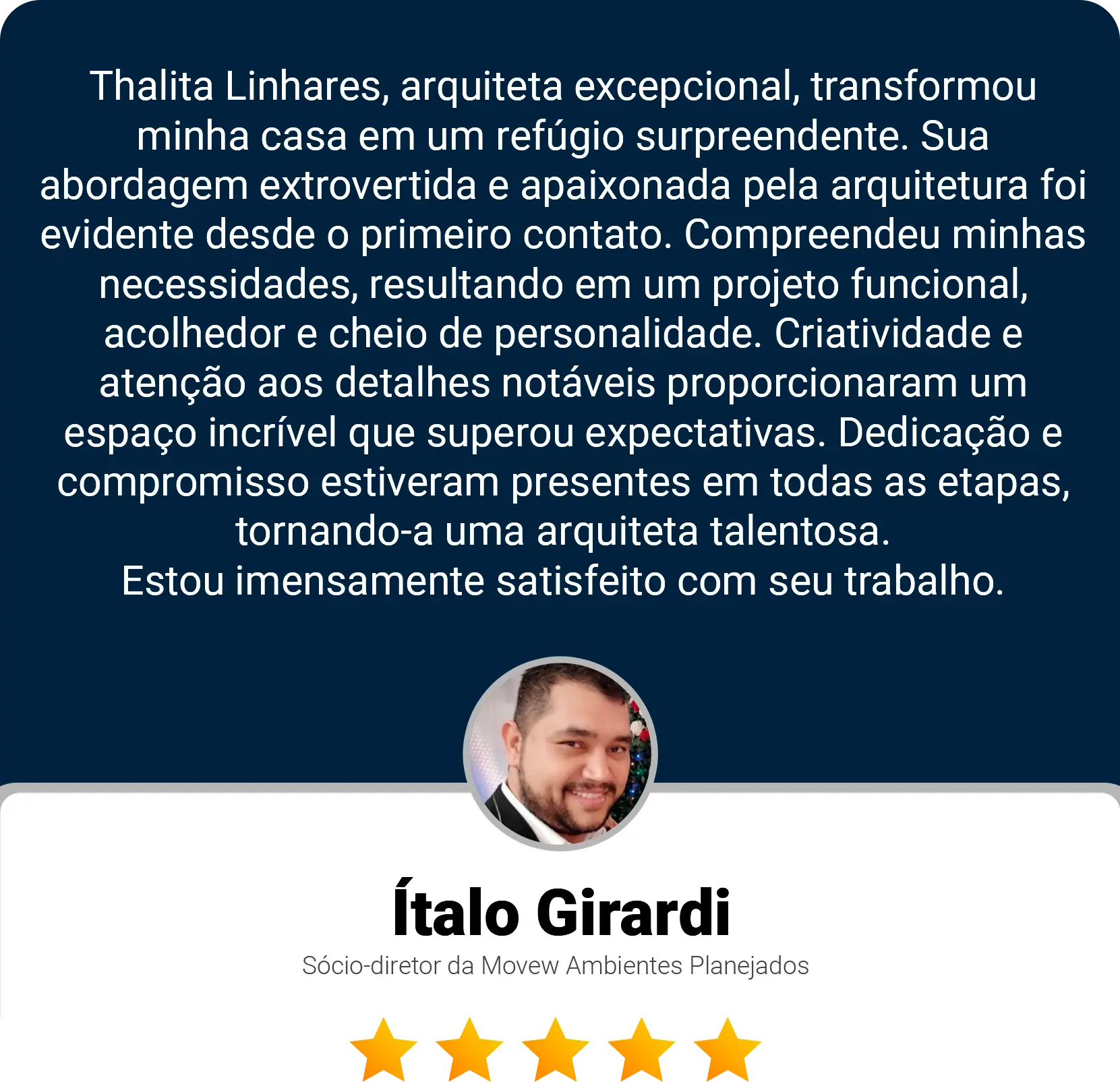 Eu sou Thalita Linhares, e cada projeto é uma jornada única para criar um ambiente que é a sua cara!